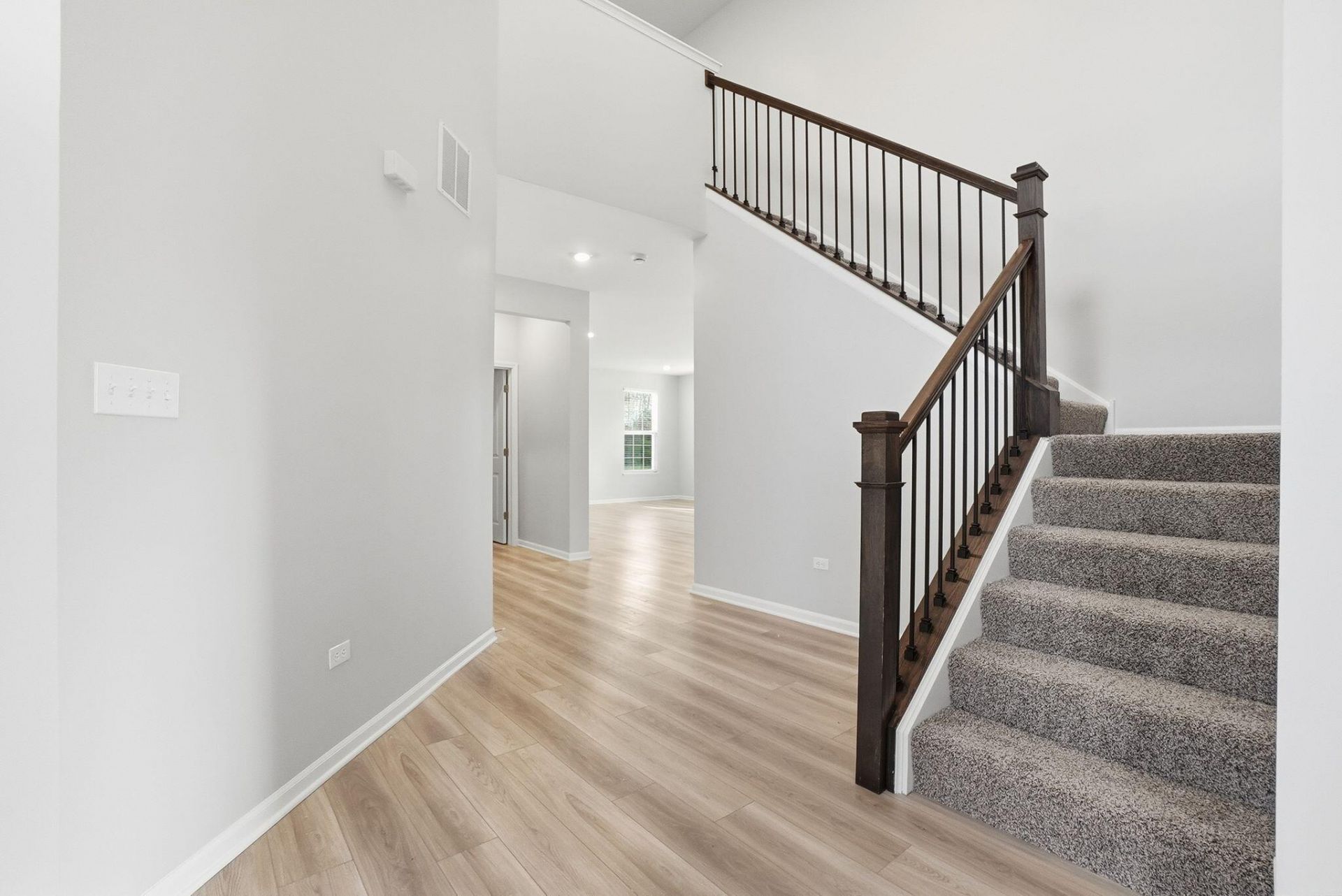 From the moment you step inside, this home makes a statement with warm oak railings and elegant iron balusters that set an inviting tone, leading you into open, thoughtfully designed living spaces filled with natural light and finished with luxury plank flooring throughout the family room for a clean, modern feel. The layout flows seamlessly into the heart of the home where the open-concept kitchen and living area create an ideal gathering space, featuring quartz countertops, 42-inch flagstone cabinetry, and stainless steel appliances that blend style with everyday function. Just off the dining area, a 10x12 patio extends your living space outdoors, offering a peaceful place to relax or entertain while enjoying the quiet backdrop of nature preserves behind the home. This property offers 4 bedrooms, 2.5 bathrooms, a 3-car garage, and a full unfinished basement, giving you flexibility for storage or future expansion.